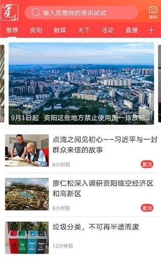 以幻灯、文字、图片、视频等多种表现形式,开设有推荐、资阳、天下、政情、融媒、视频等栏目,全天新闻实时更新,让您一手掌握最及时全面的本地资讯,最热门的国际国内大事要事,最酷炫的美图活动。用户注册登录以后还可以对新闻事件进行评论与分享,将好新闻与朋友们一起分享。