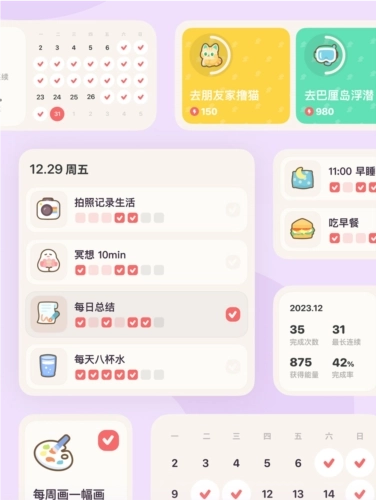 4、桌面小组件:便于用户随时了解打卡进度与奖励详情。
