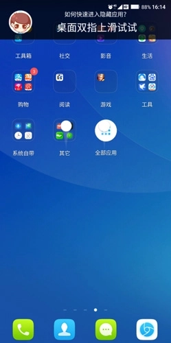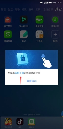 首先,我们要双指向上滑动,调出隐藏应用。