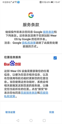 4、在手表上,按照屏幕上的说明选择语言,并接受服务条款