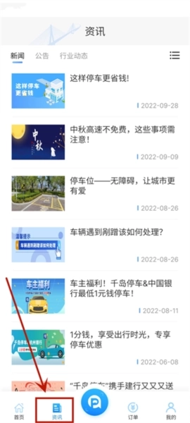 5、进入资讯版块,可以查看最新的停车资讯,各种新闻、公告以及行业动态。