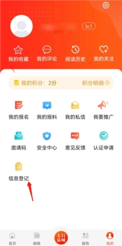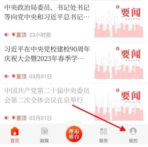 1.安装好“新邢台”客户端后,在客户端首页的右下角找到“我的”按钮并点击进入