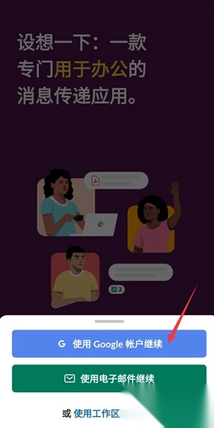 接下来请选择你的登录方式,可通过谷歌账号、电子邮箱或工作区网址进行登录。下面小编将以谷歌账号登录为例进行演示。