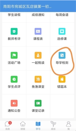 5、点击“学习”,进入“导学检测”,观看学习相关课程;