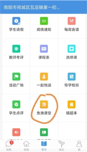 8、点击“学习”,进入“鱼渔课堂”,进行自学;