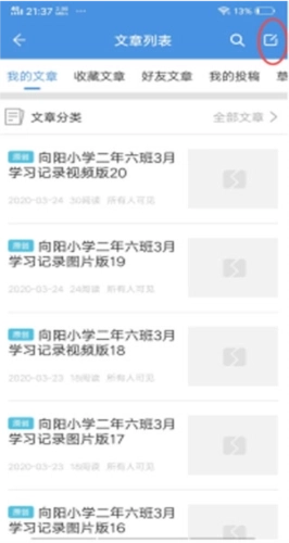 2、在“我的文章”界面,点击右上角“笔工具”。