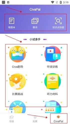 5、在CivaPal界面中,还能使用错题集、搜词、听力训练等其他学习工具及服务。