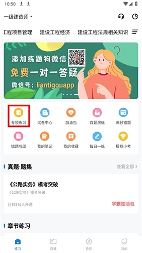 【章节练习】题库内所有一级建造师科目的章节练习均可免费使用。