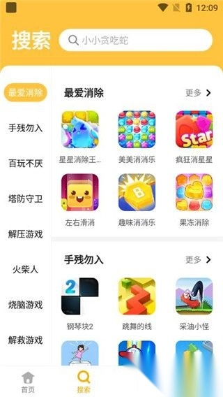 当玩家点击搜索功能按钮后,既能精准查找自己感兴趣的游戏,也能通过分类导航来筛选游戏。