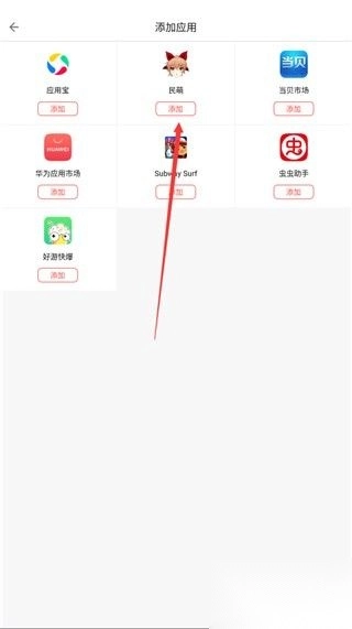挑选你想要添加的软件,我在此为大家挑选民萌这款二次元主题壁纸软件,点击添加。