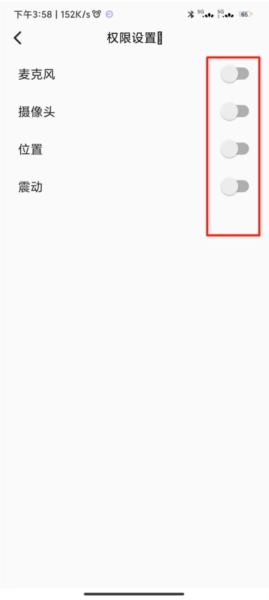 3、点击权限右侧的按钮,即可开启或关闭对应的权限功能。