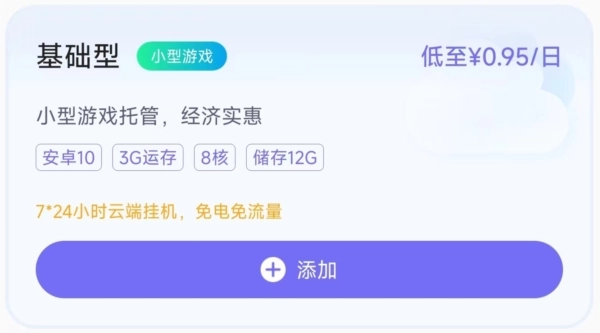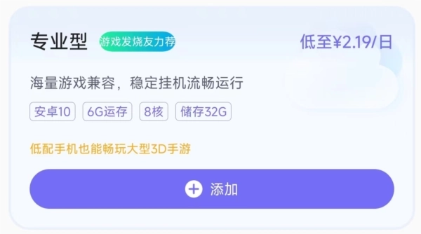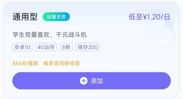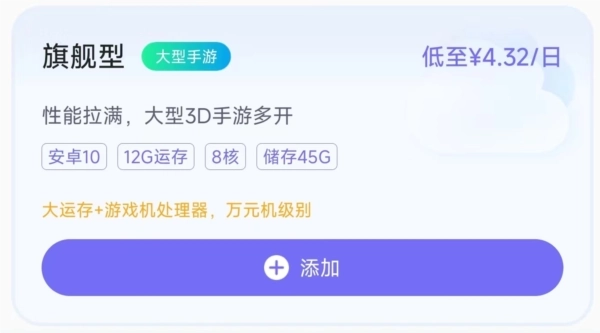 2.还可以在添加页面直接依据自身需求挑选套餐,并查看云机的配置服务。