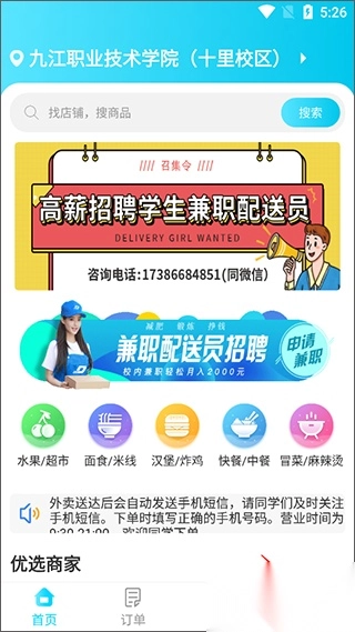 个人中心整合了余额查询、地址管理、商家加盟、学生兼职等多项功能,可一站式满足各类需求。