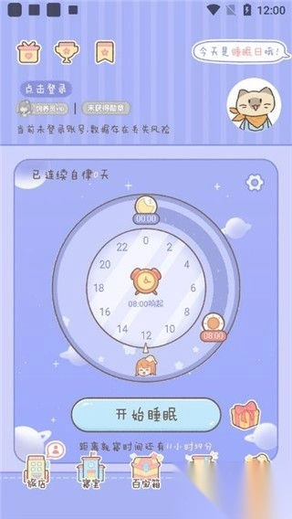 这款助眠应用能帮你逐步养成规律的睡眠习惯,提升睡眠质量。初次使用时,你可以设定专属的睡眠时段,次日完成打卡就能获取积分奖励。这些积分可兑换各类个性化装饰道具,但需注意按时起床,否则奖励会失效。此外,应用内还设有经营玩法,在培养健康作息的同时,趣味小游戏也能为你增添休闲乐趣。