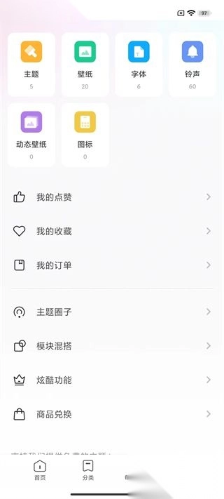 进入主题壁纸后点击右下角的我的。