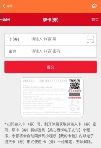 3、输入卡券和密码,就能够直接绑定了。