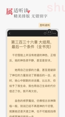 4、在这里,您能够发布书评,和书友们交流读书的感悟;在这里,您能第一时间收到新书上架、连载更新的消息;戴上耳机,进入听书阁,开启您的听书旅程吧!听书阁让您无论何时何地都能畅享在书海中遨游的快乐!