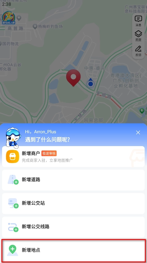 在地图上找到我们想要添加的地点并长按进入地图选点