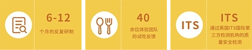 萌天天旗下的每一款产品,都要历经6到12个月的反复研发打磨,经过40多位萌煮体验团队成员的试吃反馈优化,还要通过英国ITS国际第三方检测机构的质量安全检测,最终才得以打造出无添加、天然、健康、有机的优质产品。