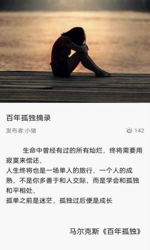短知句子是笔吭信息科技(山东)有限公司开发的阅读平台,拥有海量美文内容。在这里,你能找到心仪的句子、文案、短知识等各类有趣文字,还可以将它们摘抄下来,作为日记保存。软件内设有200多个分类,无论你需要励志语录、情感文案、朋友圈文案大全,还是名人名言、好词好句,都能在这里得到满足。利用碎片化时间,就能学习到更多知识!