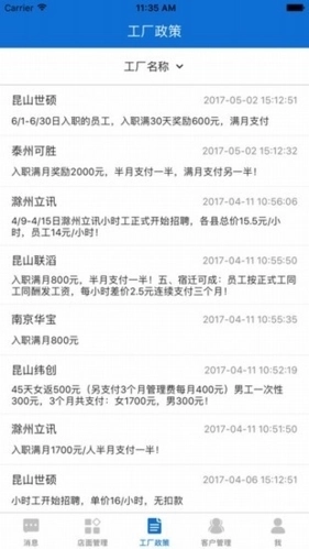 1、可以看到从门店发往工厂的每批员工是详细信息;