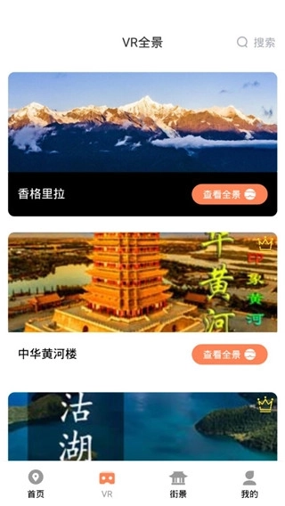 4、点击“vr全景”板块,即可沉浸式欣赏热门景区的360°实景画面。