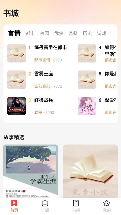 3、首页提供丰富的书籍资源,涵盖各类不同题材,可供用户自由选择。