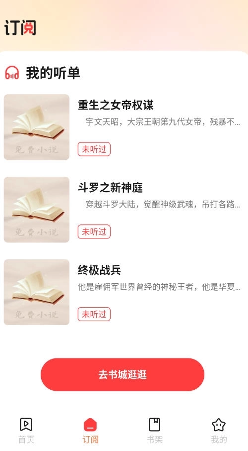 3、个性化听单管理:支持把喜欢的有声小说添加到专属听单里,进行集中整理收纳,方便随时回听,助力用户打造属于自己的私人音频图书馆。