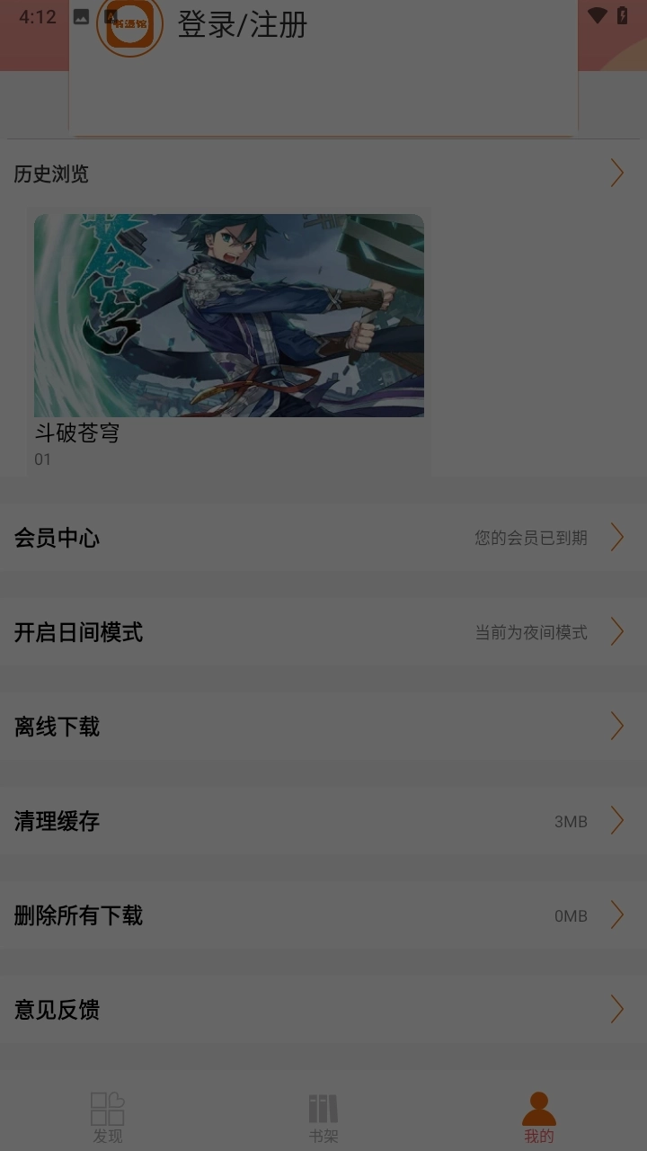 1、打开书漫馆应用,进入主界面后,点击右下角的“我的”按钮,即可进入个人中心。