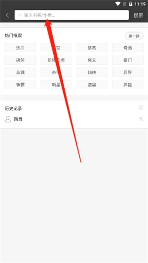 2、这时候就可以用到搜索功能了,用户既能够搜索想要阅读的小说的书名或者作者,也可以通过小说标签来进行浏览。