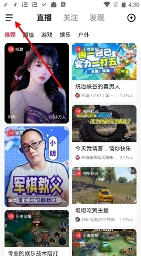 1、进入度小视后,首先点击左上方的“三”按钮;