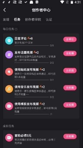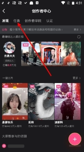 3、进入创作中心后,再点击“任务”,在任务页面中,我们就可以看到各种任务。