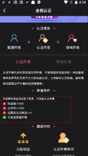 2、在全面认证页面,我们可以看到想要成为认证作者,要满足以下要求: