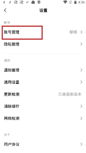 3、在设置页面,我们可以看到“账号管理”,点击进入;