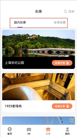 5、在“街景”栏目中,可选择“全国街景”或“全球街景”选项,以查看实时的街道路况;