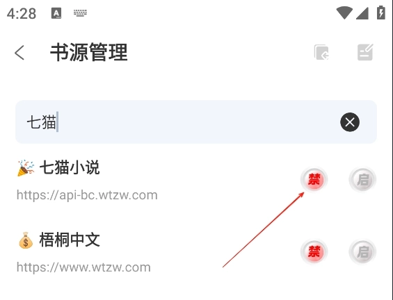 搜索想要禁用的书源名