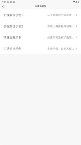 八哥伪原创是一款由武汉豆糕科技有限公司发行的有着强大功能的专门为用伪原创文案创作的,该软件中是有很多的功能,你在这里是可以直接进行伪原创创作,能够根据主题,快速生成各种伪原创文章,一键智能改写论文,作文,小说等,原创度搞,为大家提高文字创作效率!八哥伪原创工具中是没有任何广告的,使用起来也是非常便利,感兴趣的用户快去吧!