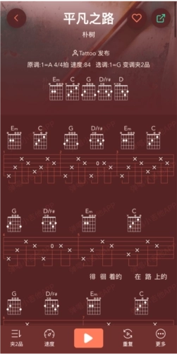 可以播放演奏音频样例、实现自动跟随,还能自由调整调性,心仪的歌曲也能依据自身音高来挑选,调速与AB循环功能更是吉他练习的得力帮手。别再使用那些排版杂乱、标记繁琐的纸质吉他谱了,学习吉他弹唱一首歌曲,从开始上手弹奏练习到熟练掌握,有一个智能吉他谱就足够了。