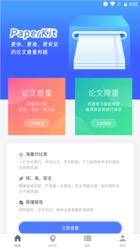 PaperKit论文查重最新版是一款由上海鲸码科技中心研发的手机论文查重软件。每到毕业季,不少大学生为毕业论文的查重降重所困扰,如果你也有这样的问题,你不妨来试试这款软件。一键上传查重的本科、硕博、职称论文,支持不同的格式,快速获取论文查重报告,还可以通过智能降重功能帮助你轻轻松松达到标准,快来试试吧!
