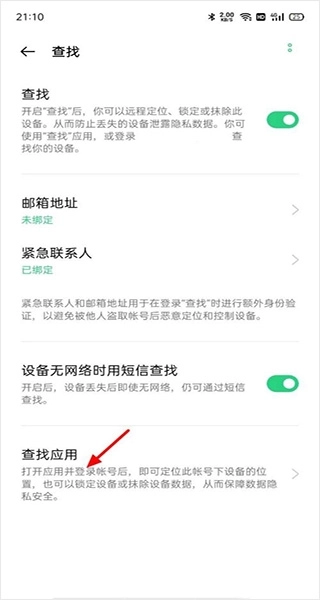 在帐号页面,点击查找手机。