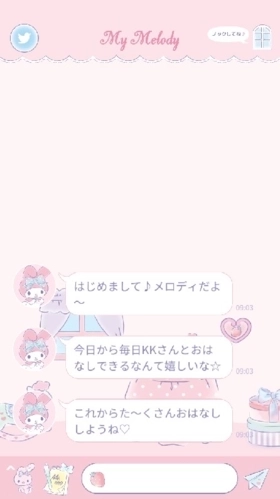 1、以人气角色Melody为主题的免费手机应用程式,同时为记念Melody的45岁生日推出,应用程式包括聊天、日程安排、闹钟程式等。