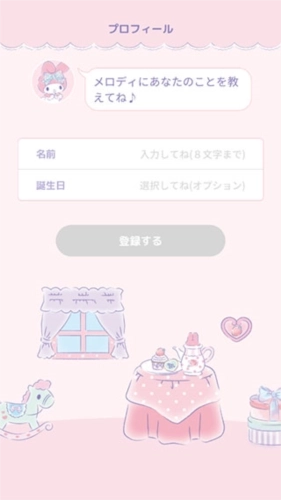 1、在本站安装好mymelody后,点击进入,输入昵称和生日创建。