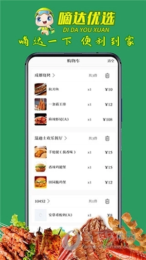 3、点击进入商家页面后,用户可将美食商品添加至购物车,也能一键完成结算操作。