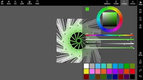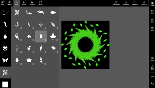 5左上角还有个贴纸功能,大家可以在自己画好的图案上添加贴纸,贴纸的颜色会和你们自己画笔的颜色保持一致。