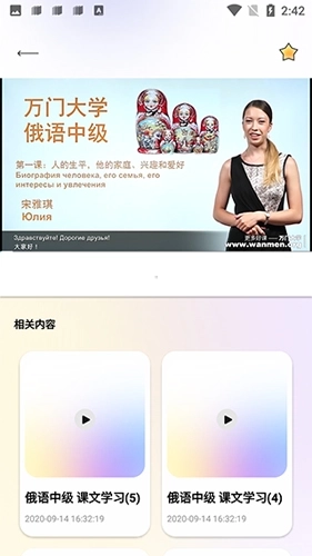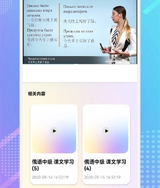 3、可以去点击中间的选项,你们就可以看到俄语的外教的老师录制的教学视频,可以很好的让你们更有语境。