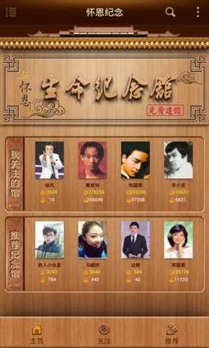 能够在线关注纪念馆,名人纪念馆、亲人纪念馆等都可以自定义添加关注
