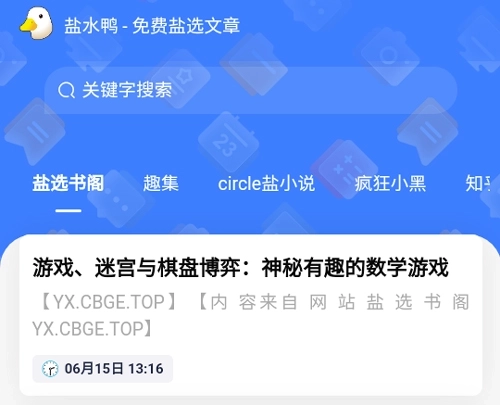 在“盐水鸭小说”里,你既能搜索知乎上近期的热门电影、头条新闻,也能查找感兴趣的人物与话题,短时阅读同样可以充满趣味。无论是通勤途中,还是睡前时光,输入你感兴趣的任意关键词进行搜索,相信总能让你有所收获。这里最受用户青睐的内容方向涵盖职业通识、美好生活指南、社科常识、经济规则等领域,同时也包含法医笔记、人工智能、户外攀岩、希腊神话等特色主题。