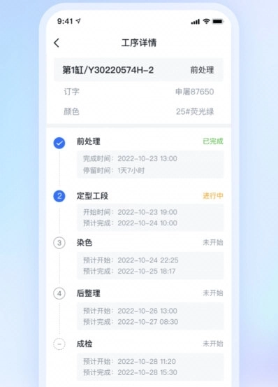 2、对于订单进度了如指掌,直观的查看到相关的流程卡状态。