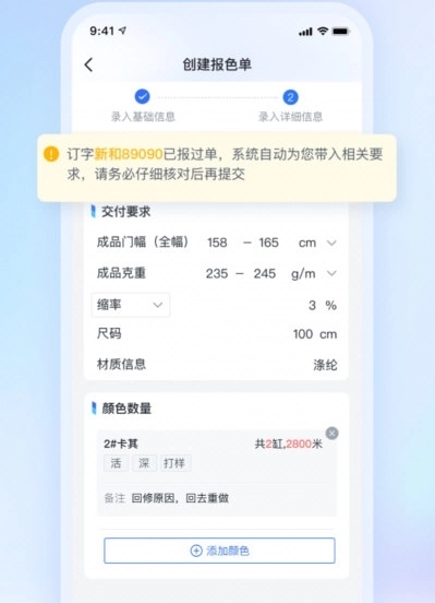 1、复制新增:已创建的报色单,支持复制后再来一单,减少相似加工要求等的录入