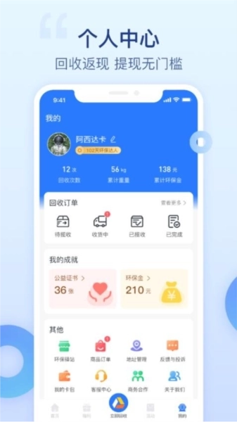 支持用户将自己在线回收换取的现金进行一键提现,提现到个人账户中使用
